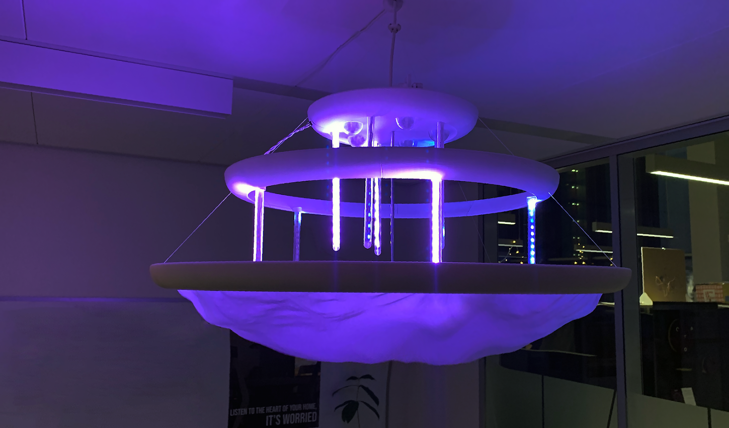 Tempestio is a smart chandelier that brings the experience of upcoming weather to the home, serving as an alarm.